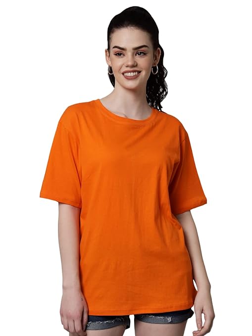 Orange Casual Oversized Round Neck Tshirt