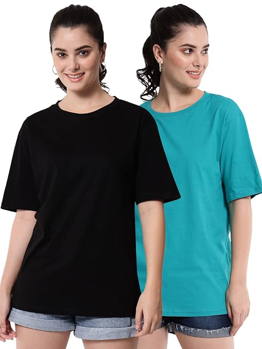 Pk 2 Women Cotton Half Sleeve Oversized T-Shirts