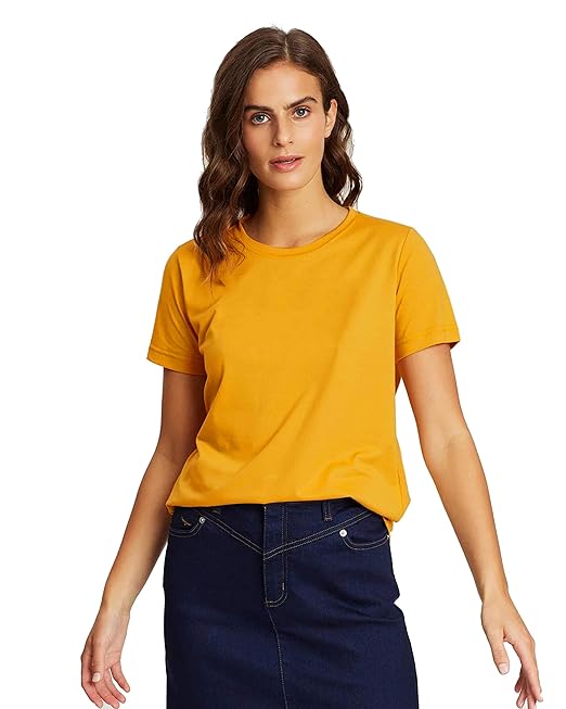 Plain Cotton Women Mustard T-Shirts.
