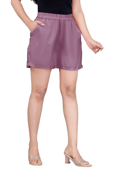 Purple Women Cotton Blend Casual Shorts