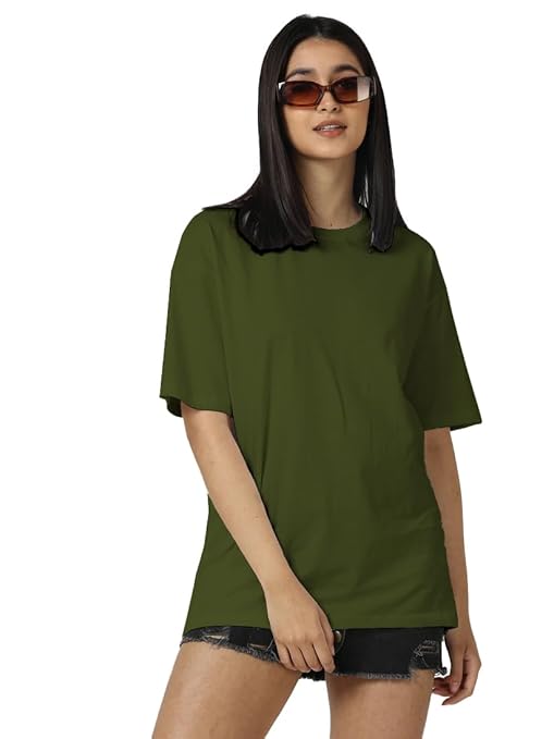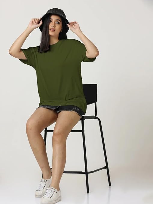 Women Cotton Oversized Olive T-shirt.
