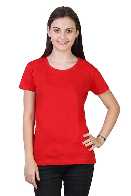 Women Plain Cotton Red T-Shirt.