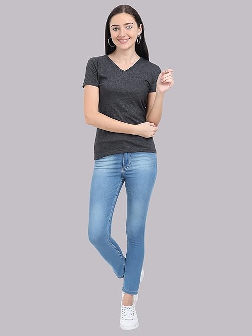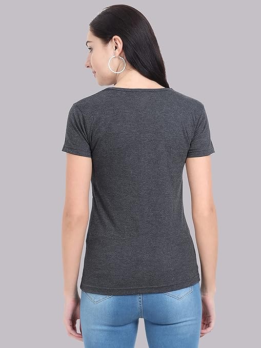 Women Plain V Neck Charcoal T-Shirt.