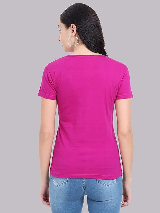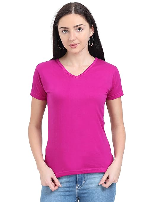 Women Plain V Neck Magenta T-Shirt.