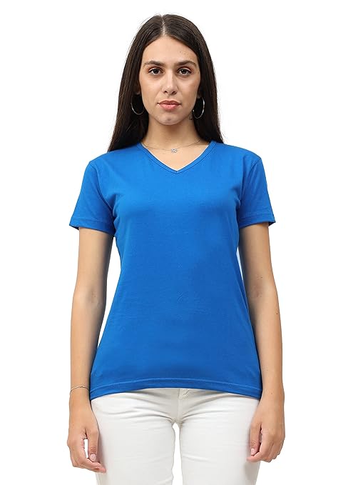 Women Plain V Neck Royal Blue T-Shirt.